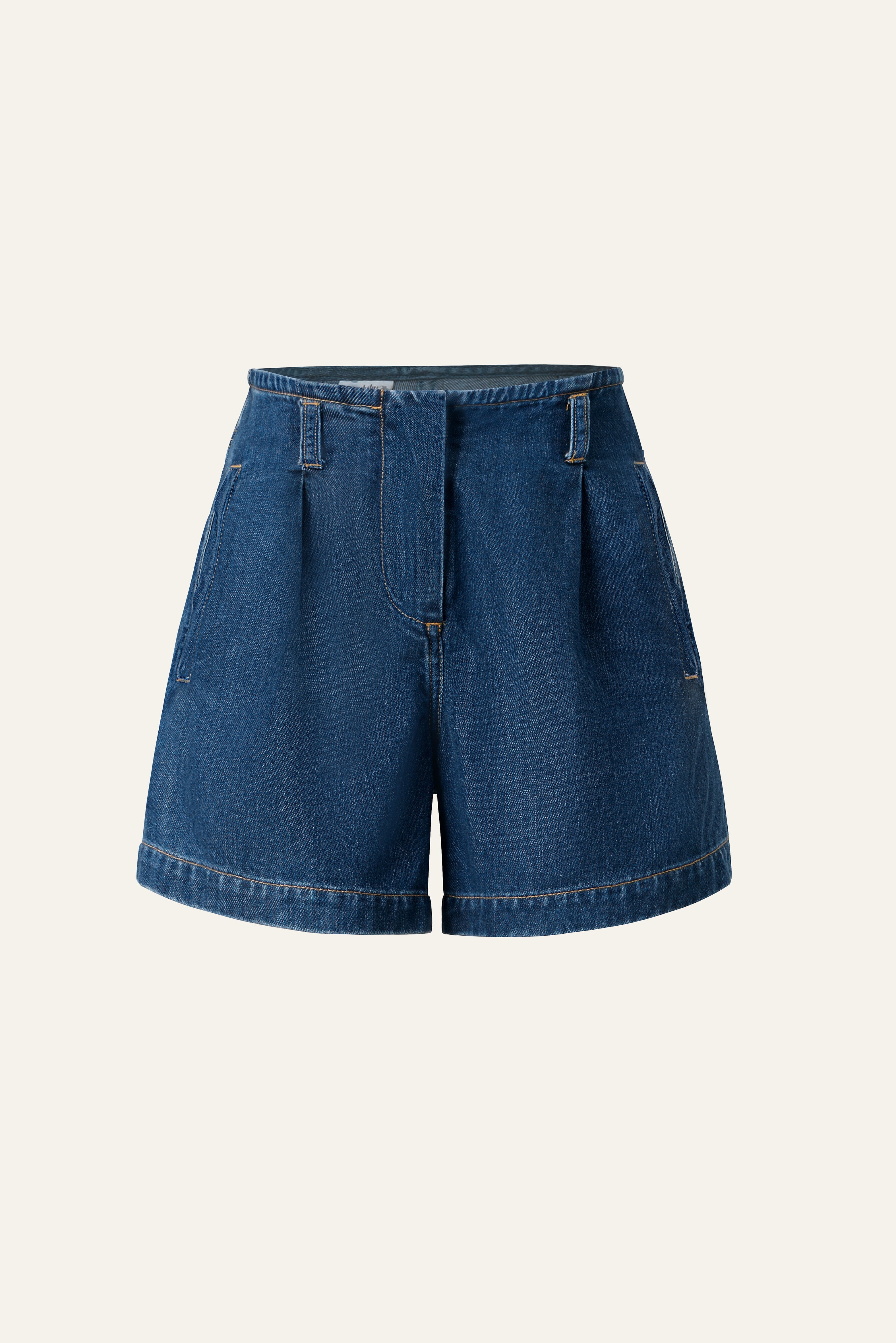 The Gentle Denim A-line Shorts is cut in 100% long-staple cotton for a smoother hand feel, refined luster, and breathable comfort — all while holding a tailored silhouette.