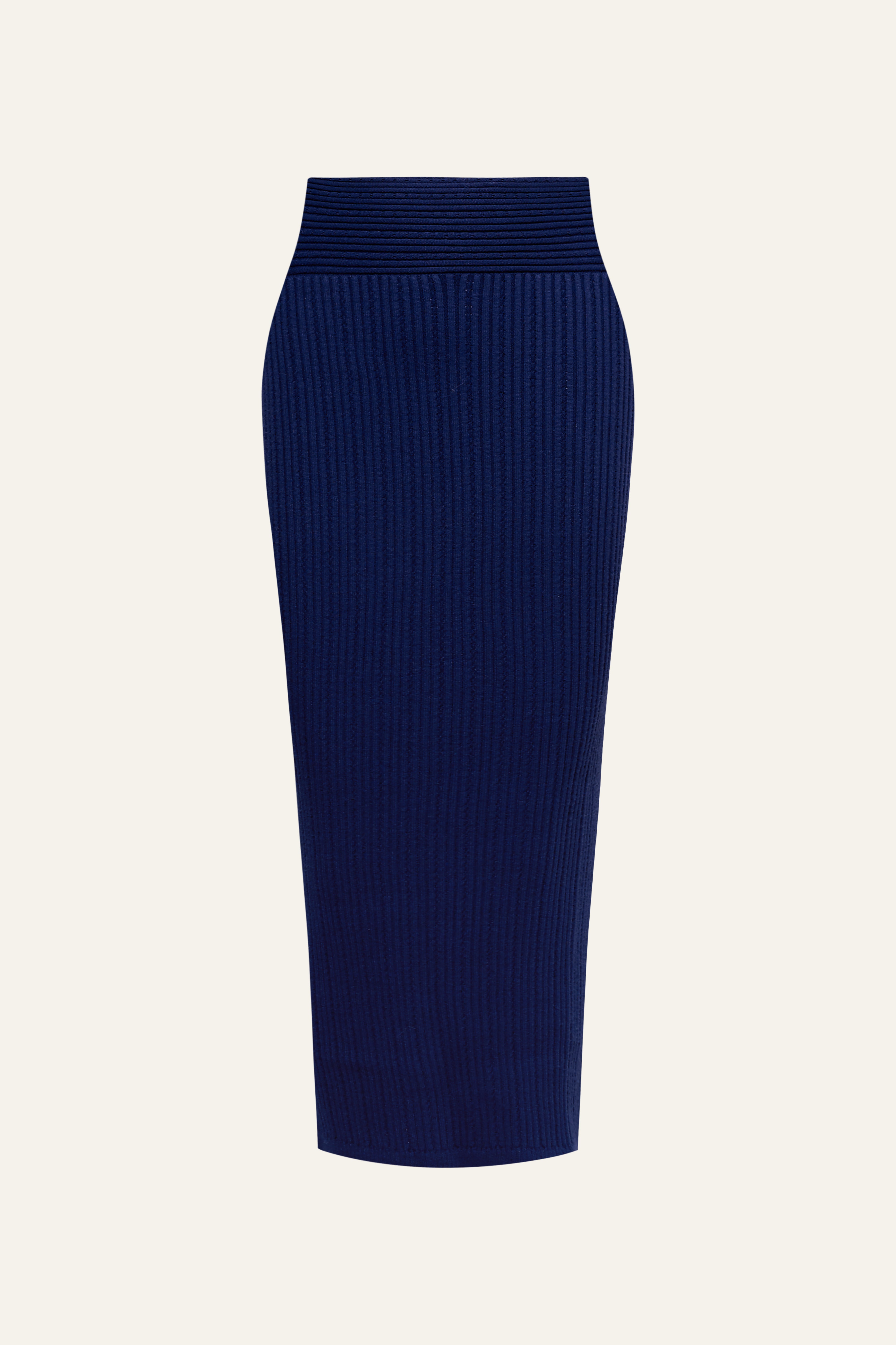 The Seamless Knit Column Skirt is knitted in one whole piece with WHOLEGARMENT® technology and crafted from an ultra-soft Gracell® yarn blend. Notably, side seams are eliminated for a smooth sculpted finish, allowing the skirt to be worn with slit at the side or center back. Vertical rib knit with intricate pointelle detailing flatters and lengthens the figure.