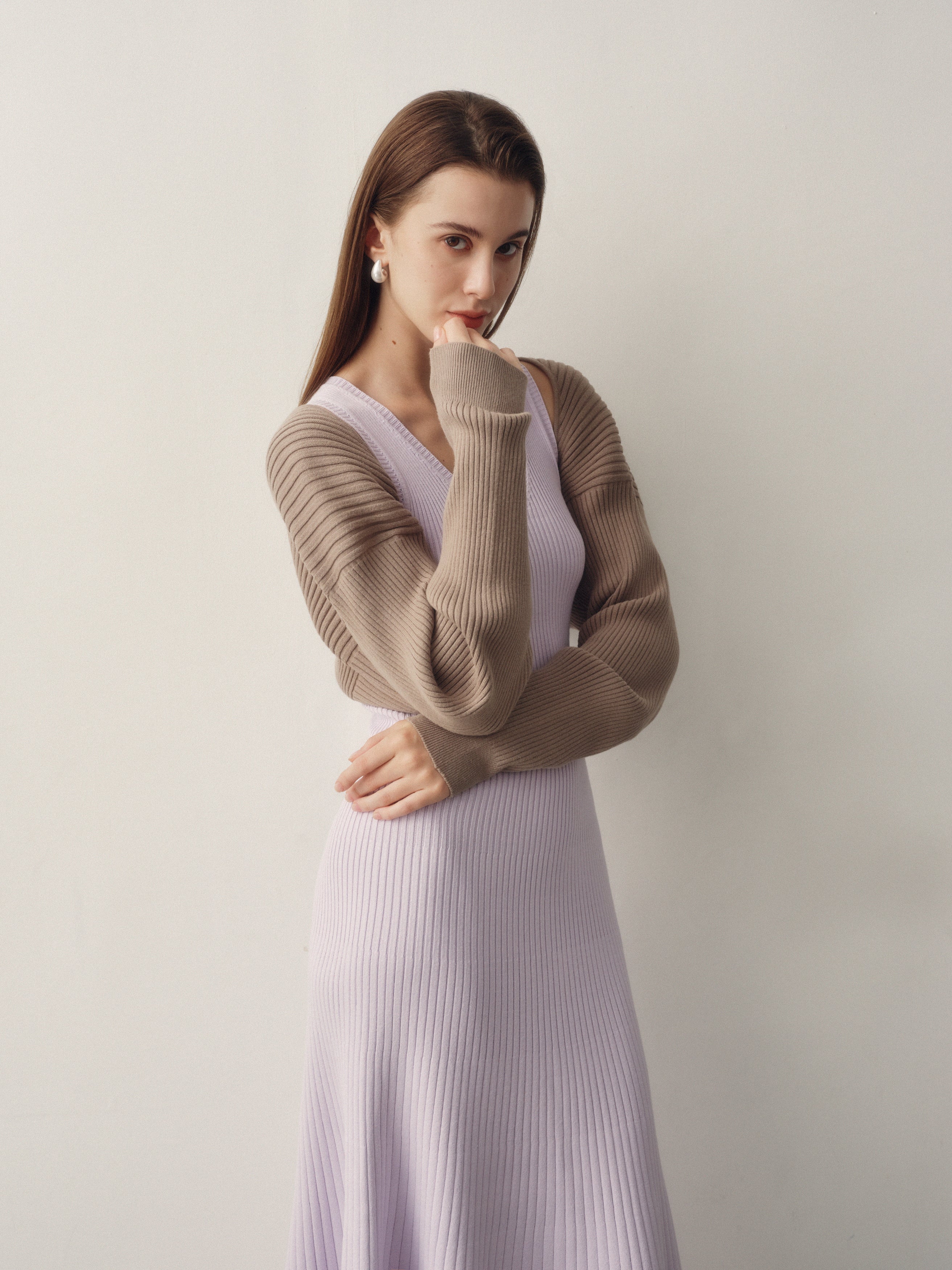 The Seamless Knit Shrug Cardigan is knitted in one whole piece with WHOLEGARMENT® technology and crafted from an ultra-soft Gracell® yarn blend. Designed without shoulder or sleeve seams, it drapes effortlessly over the back and arms. Voluminous sleeves add a soft, cocoon-like structure, making it the perfect finishing layer over sleeveless knits or dresses.
