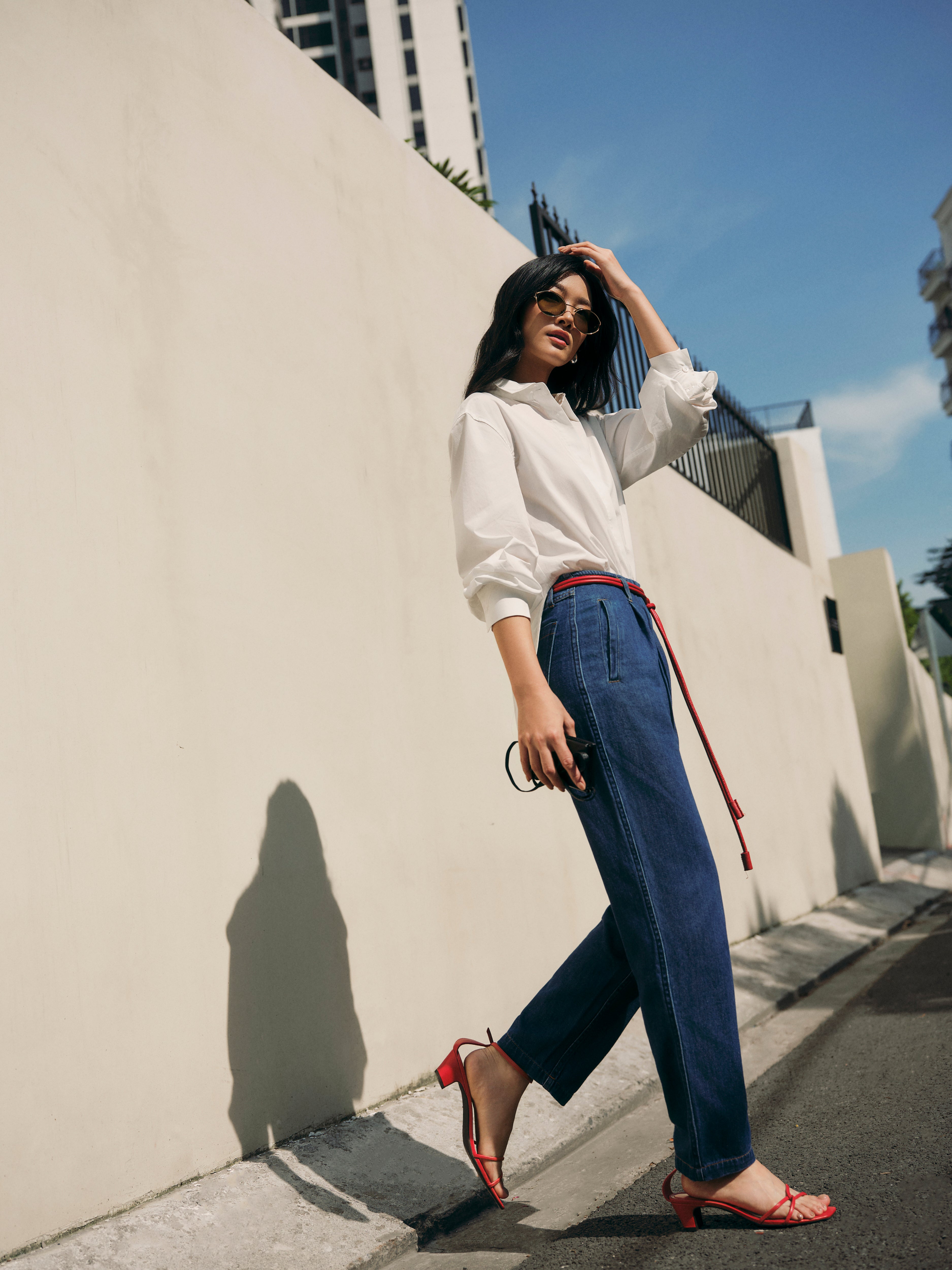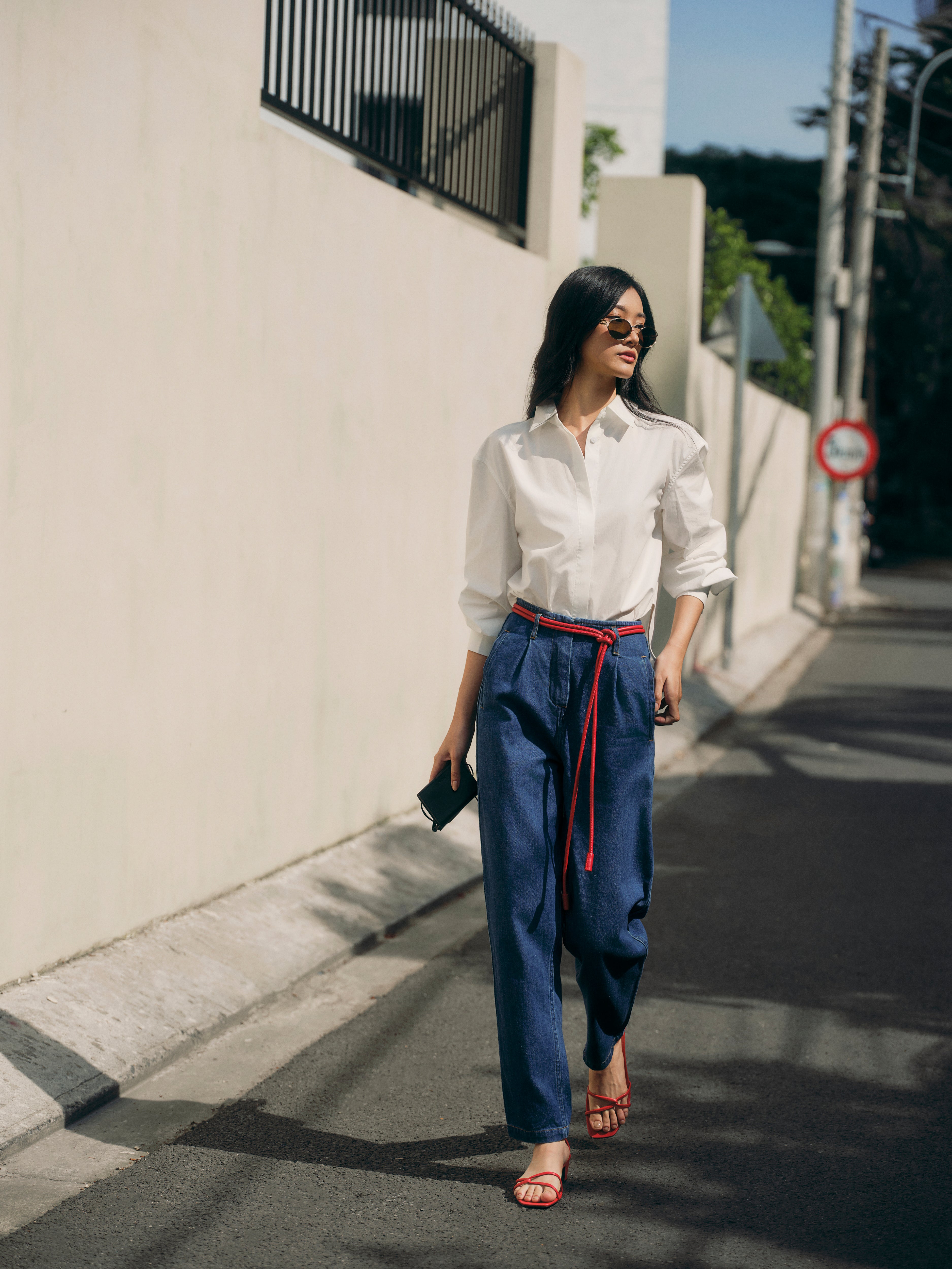 Model is 1.63cm tall, UK4, wearing size XS. This shirt's cut is meant to be a little oversized. You may choose to size down if you want a more streamlined fit. All measurements are subject to 0.5” difference.